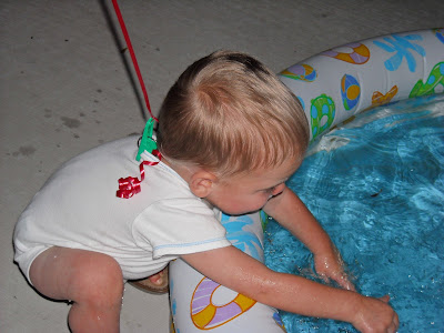 Notice his diaper got a little wet...I wasn't prepared for my children to just hop into their pool. They hadn't ever done that without Mommy being in there with them.